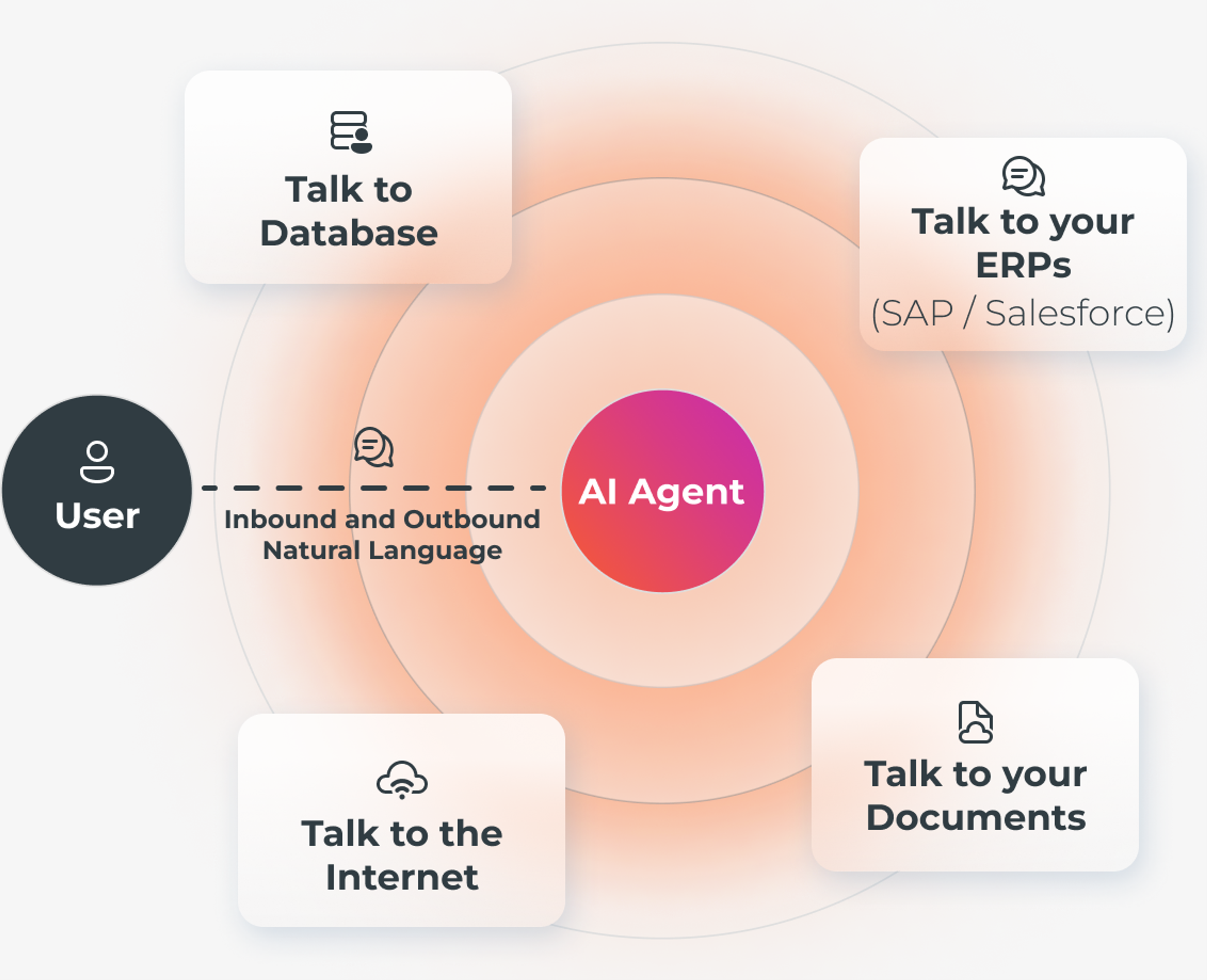 A Natural Language gateway to talk to all your company assets as well as the external world. Get answers to complex questions that require combining information from multiple sources (databases, company documents, ERPs, multimedia, and more).
